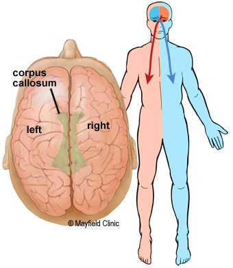 مغز انسان به دو قسمت عمدهی نیم کره ی راست و چپ تقسیم میشود.