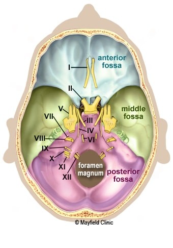 مغز ۱۰ تا از ۱۲ جفت عصب مغزی از جمله شنوایی، حرکت چشم ، احساس در صورت، حواس چشایی، بلعیدن و حرکات ماهیچههای صورت و گردن و شانه و زبان را کنترل می کند.